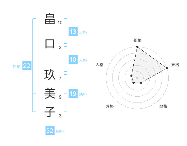 畠口 玖美子さんの総格は32画の5点!