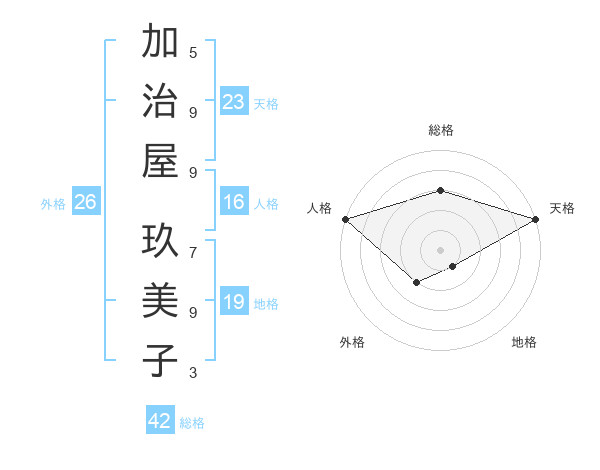 加治屋 玖美子さんを姓名の画数から五運を鑑定