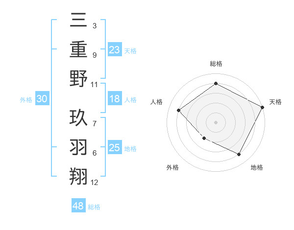 三重野 玖羽翔さんを姓名の画数から五運を鑑定