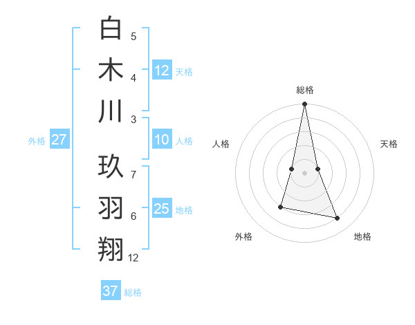 白木川 玖羽翔さんの総格は37画の5点!