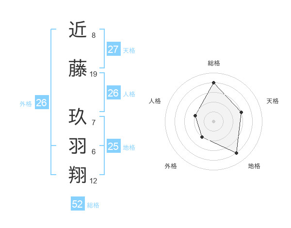 近藤 玖羽翔さんを姓名の画数から五運を鑑定