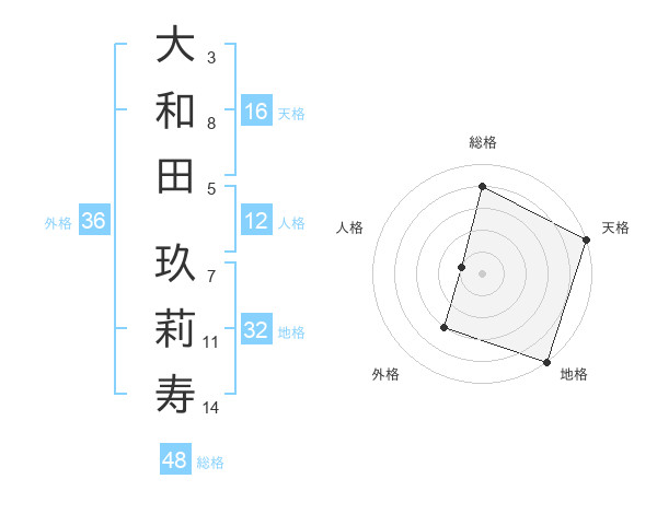 大和田 玖莉寿さんを姓名の画数から五運を鑑定