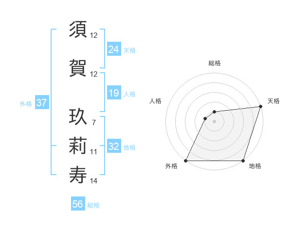 須賀 玖莉寿さんを姓名の画数から五運を鑑定