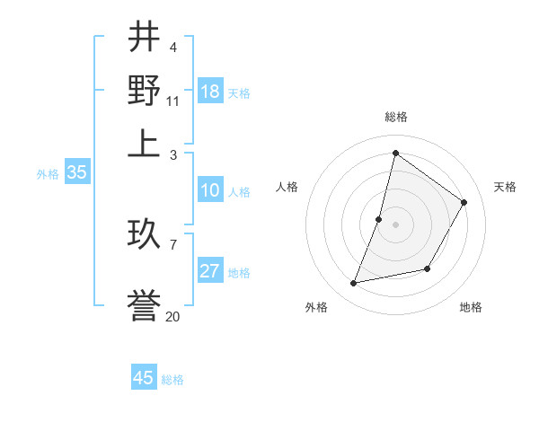 井野上 玖誉さんを姓名の画数から五運を鑑定