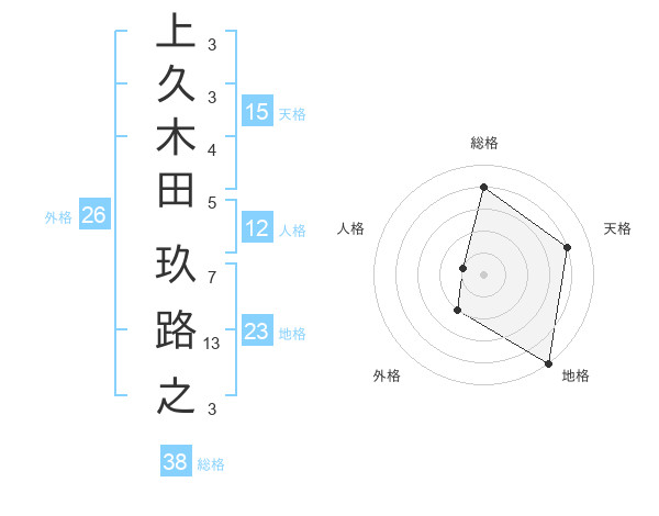 上久木田 玖路之さんを姓名の画数から五運を鑑定