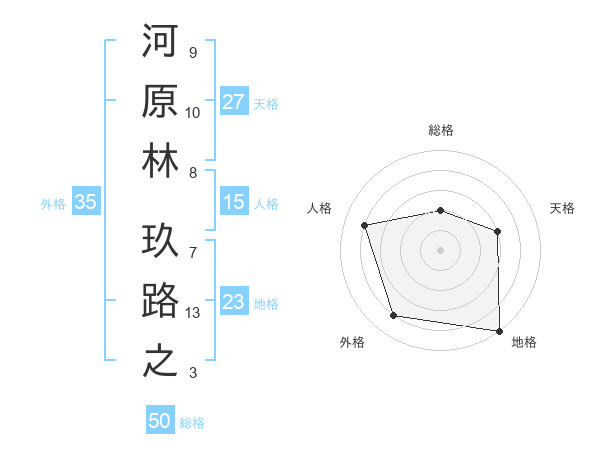 河原林 玖路之さんを姓名の画数から五運を鑑定