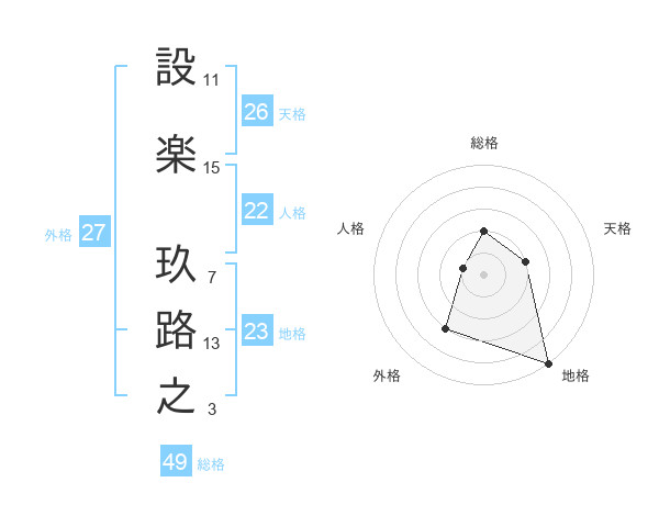 設楽 玖路之さんを姓名の画数から五運を鑑定