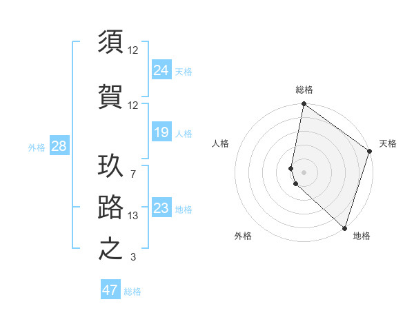 須賀 玖路之さんの総格は47画の5点!