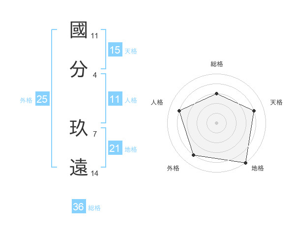 國分 玖遠さんの地格は21画の5点!