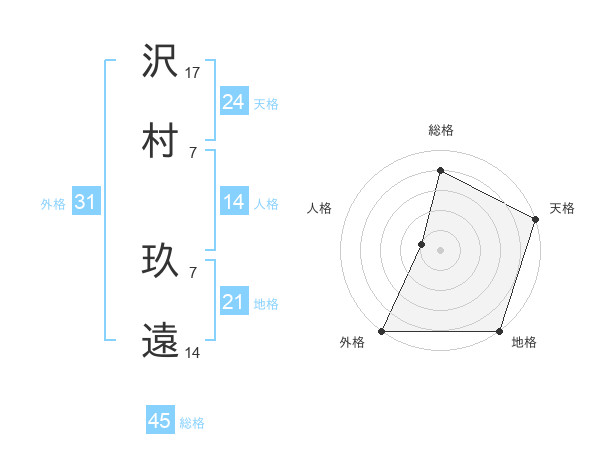 沢村 玖遠さんを姓名の画数から五運を鑑定
