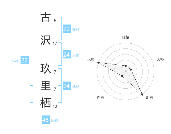古沢 玖里栖さんを姓名の画数から五運を鑑定