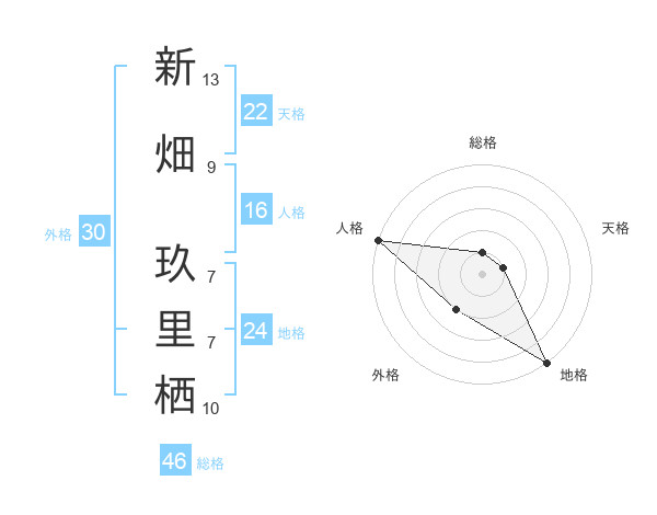 新畑 玖里栖さんの天格は22画の1点!