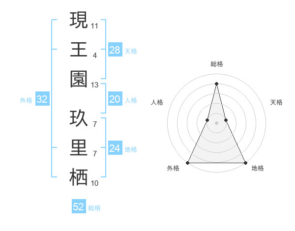 現王園 玖里栖さんを姓名の画数から五運を鑑定
