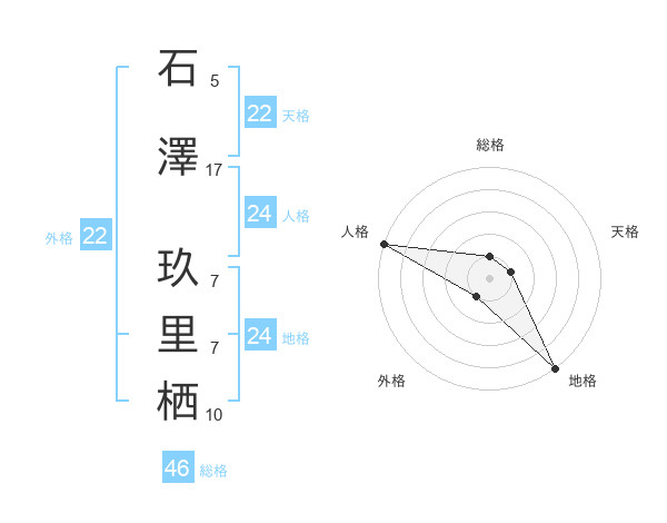 石澤 玖里栖さんを姓名の画数から五運を鑑定