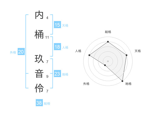内桶 玖音伶さんの総格は38画の4点!