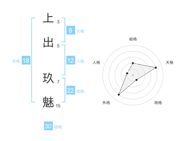 上出 玖魅さんを姓名の画数から五運を鑑定