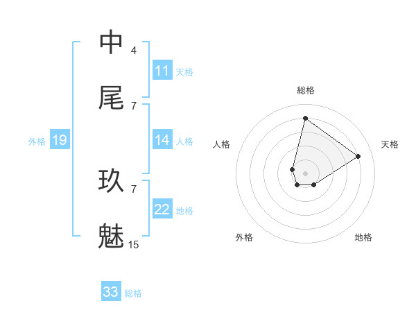 中尾 玖魅さんを姓名の画数から五運を鑑定