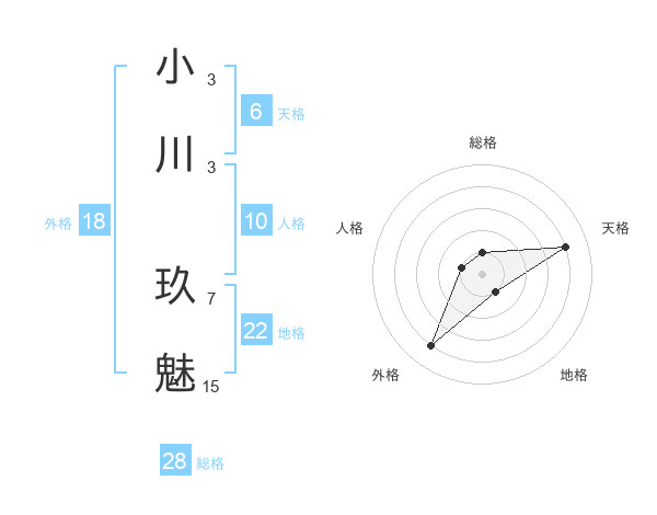 小川 玖魅さんを姓名の画数から五運を鑑定