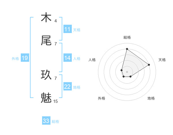 木尾 玖魅さんを姓名の画数から五運を鑑定