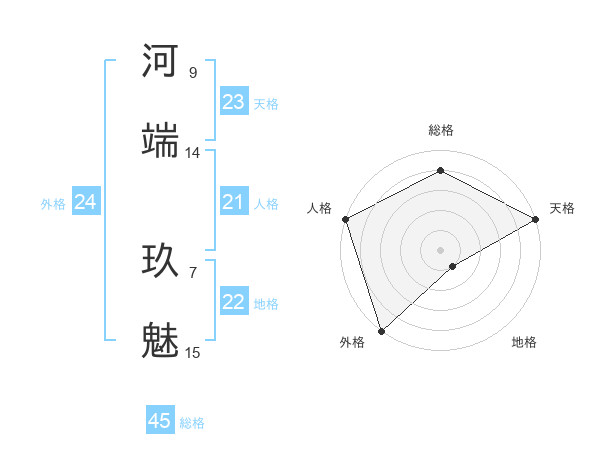 河端 玖魅さんの総格は45画の4点!