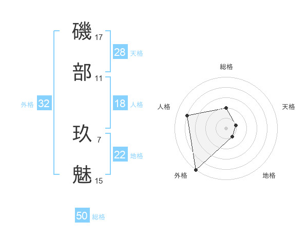 磯部 玖魅さんの総格は50画の2点!