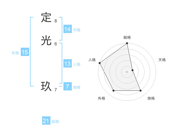 定光 玖さんの総格は21画の5点!