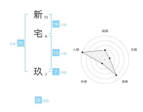 新宅 玖さんの総格は26画の2点!