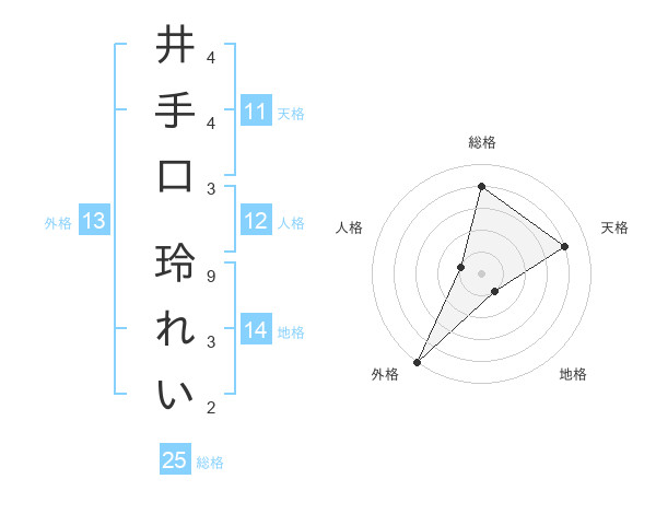 井手口 玲れいさんの天格は11画の4点!