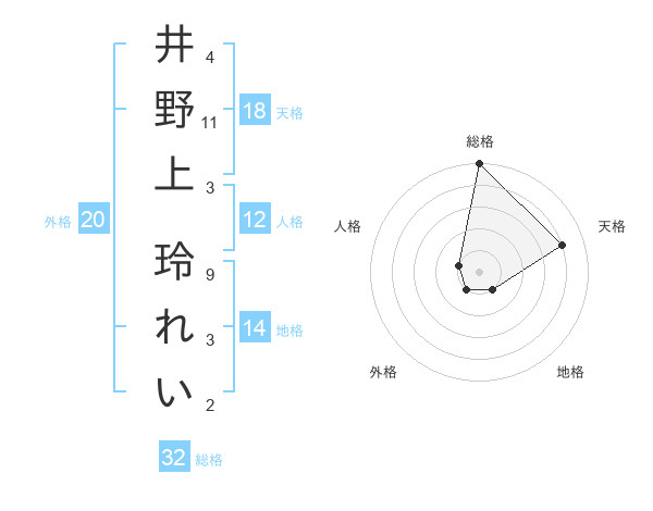井野上 玲れいさんを姓名の画数から五運を鑑定