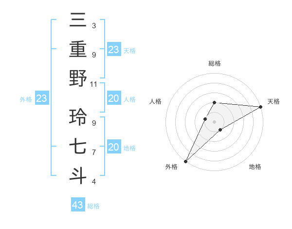 三重野 玲七斗さんを姓名の画数から五運を鑑定