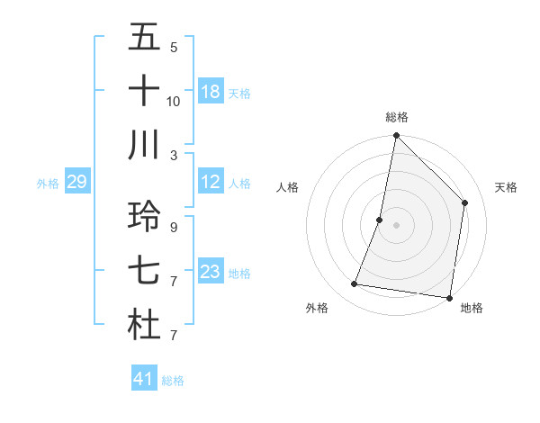 五十川 玲七杜さんを姓名の画数から五運を鑑定