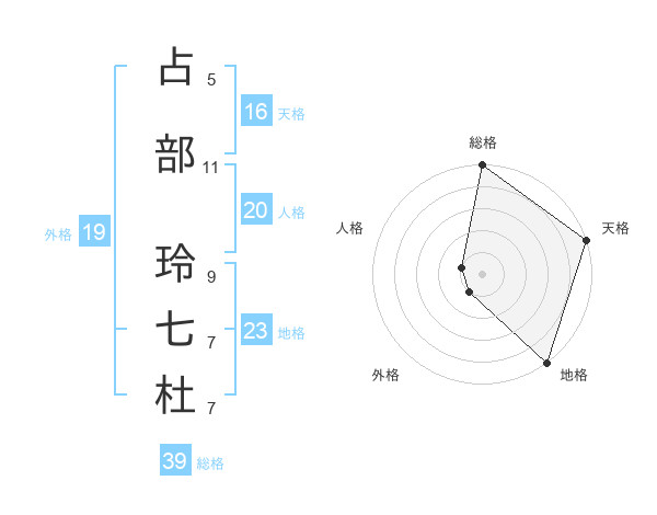 占部 玲七杜さんを姓名の画数から五運を鑑定