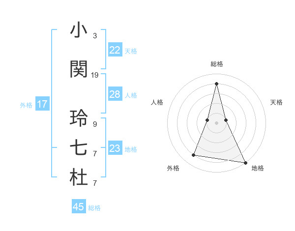 小関 玲七杜さんの外格は17画の4点!