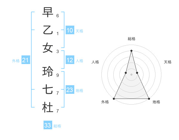 早乙女 玲七杜さんを姓名の画数から五運を鑑定