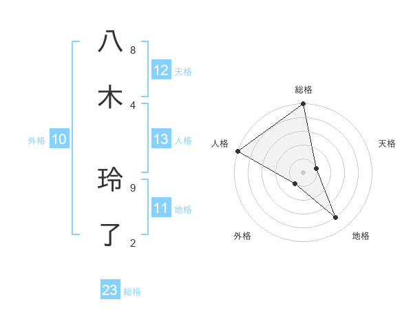 八木 玲了さんの総格は23画の5点!