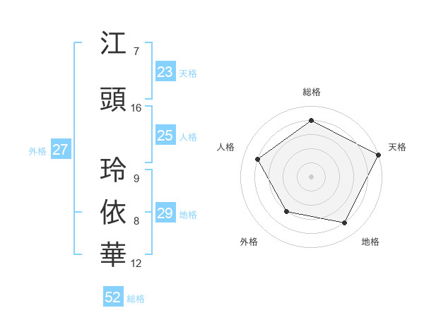 江頭 玲依華さんの総格は52画の4点!