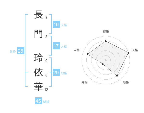 長門 玲依華さんを姓名の画数から五運を鑑定