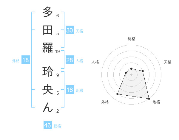 多田羅 玲央んさんを姓名の画数から五運を鑑定