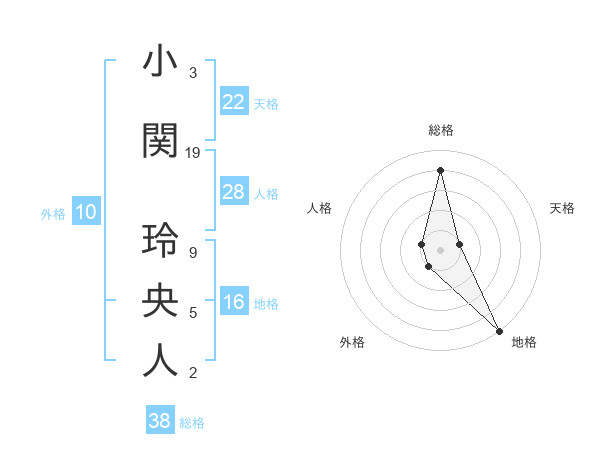 小関 玲央人さんを姓名の画数から五運を鑑定