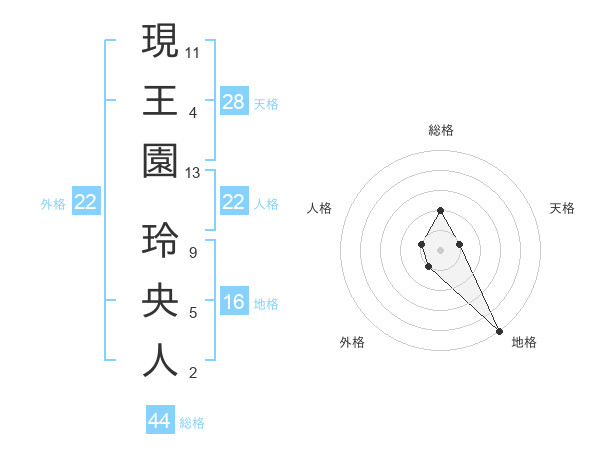 現王園 玲央人さんの総格は44画の2点!