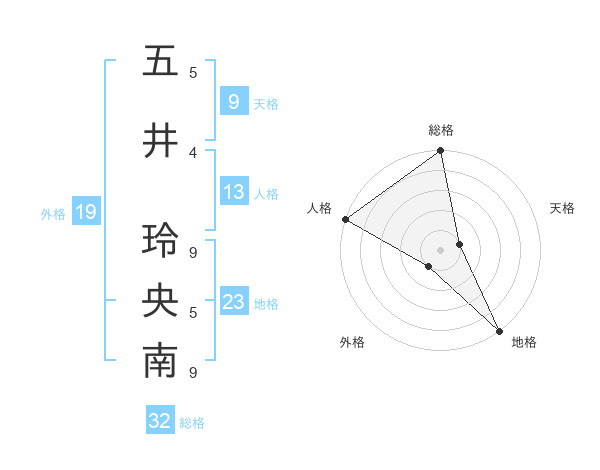 五井 玲央南さんを姓名の画数から五運を鑑定