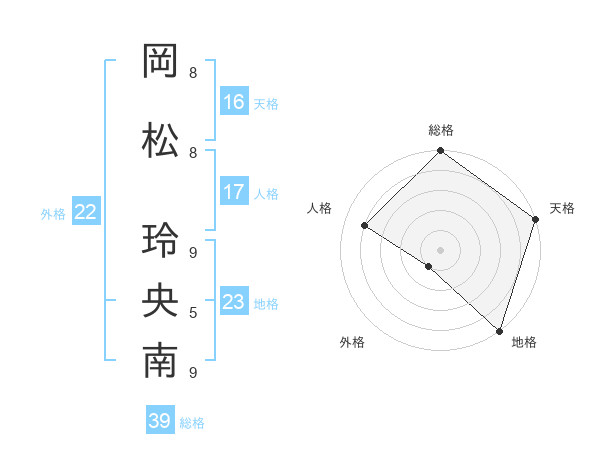 岡松 玲央南さんを姓名の画数から五運を鑑定
