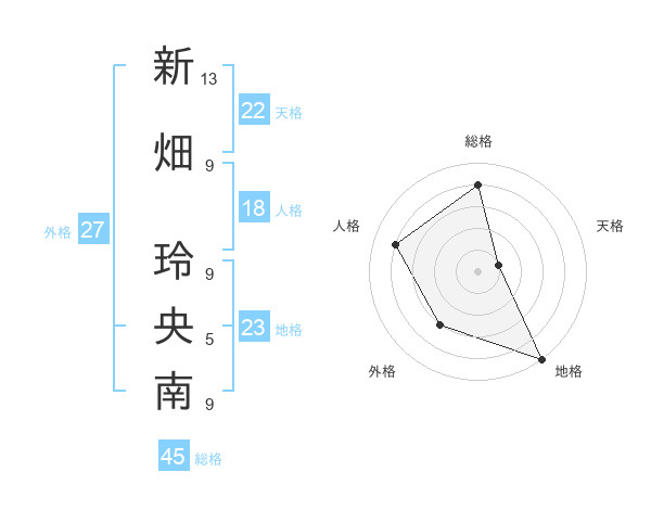 新畑 玲央南さんを姓名の画数から五運を鑑定