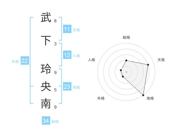 武下 玲央南さんを姓名の画数から五運を鑑定
