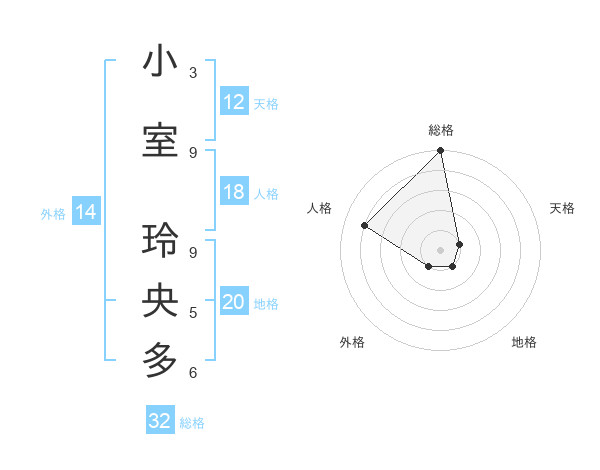 小室 玲央多さんを姓名の画数から五運を鑑定