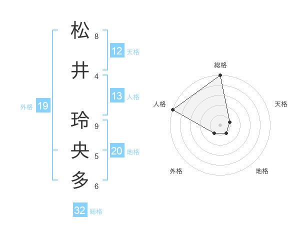 松井 玲央多さんを姓名の画数から五運を鑑定