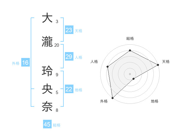 大瀧 玲央奈さんを姓名の画数から五運を鑑定