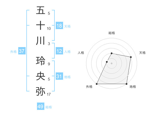 五十川 玲央弥さんを姓名の画数から五運を鑑定