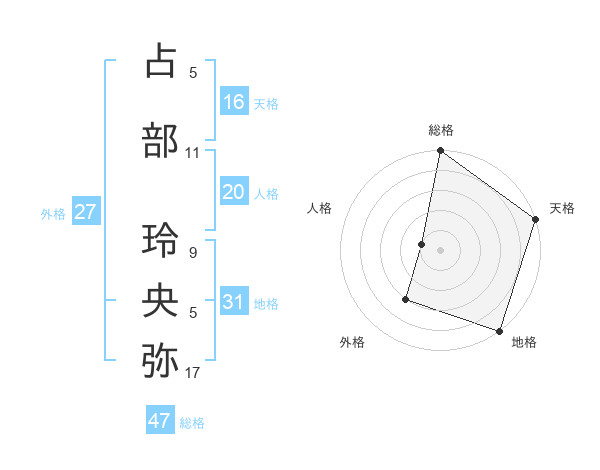 占部 玲央弥さんを姓名の画数から五運を鑑定