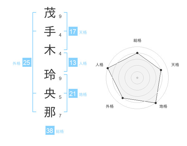茂手木 玲央那さんを姓名の画数から五運を鑑定